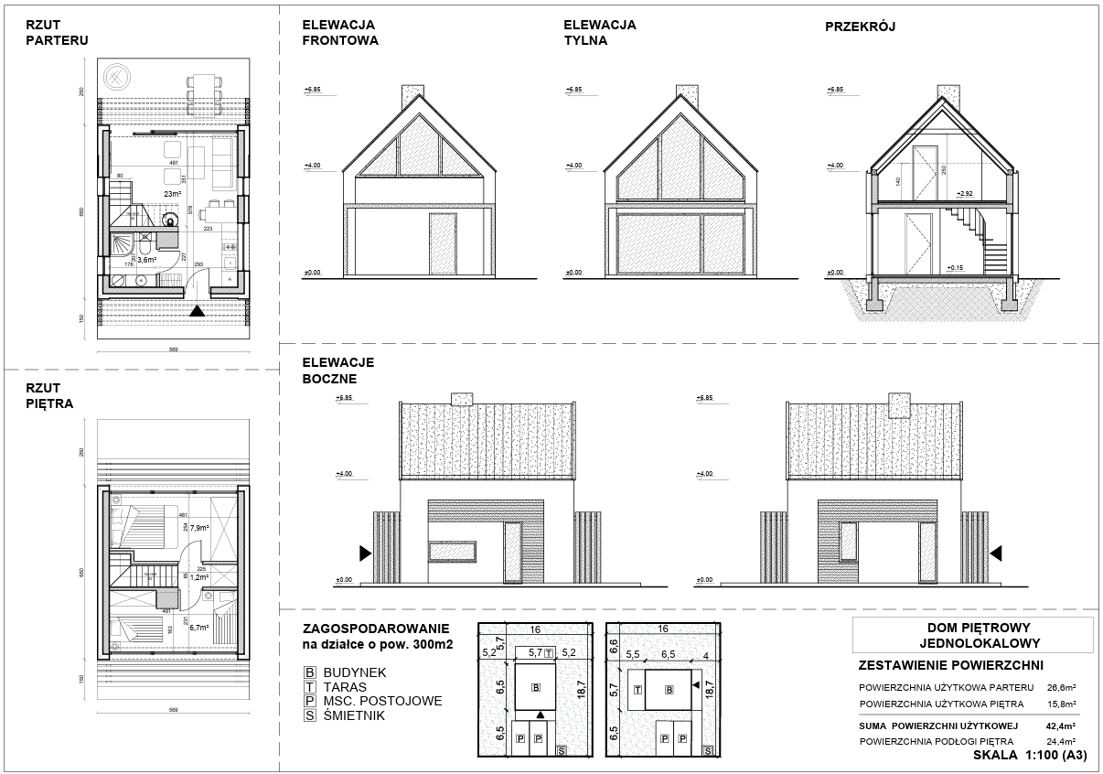 Aby sprawnie przeprowadzić proces uzyskania pozwolenia na budowę, oferujemy do wyboru dwa gotowe projekty. Po uzyskaniu pozwolenia możliwa jest ich zmiana na projekt zamienny.