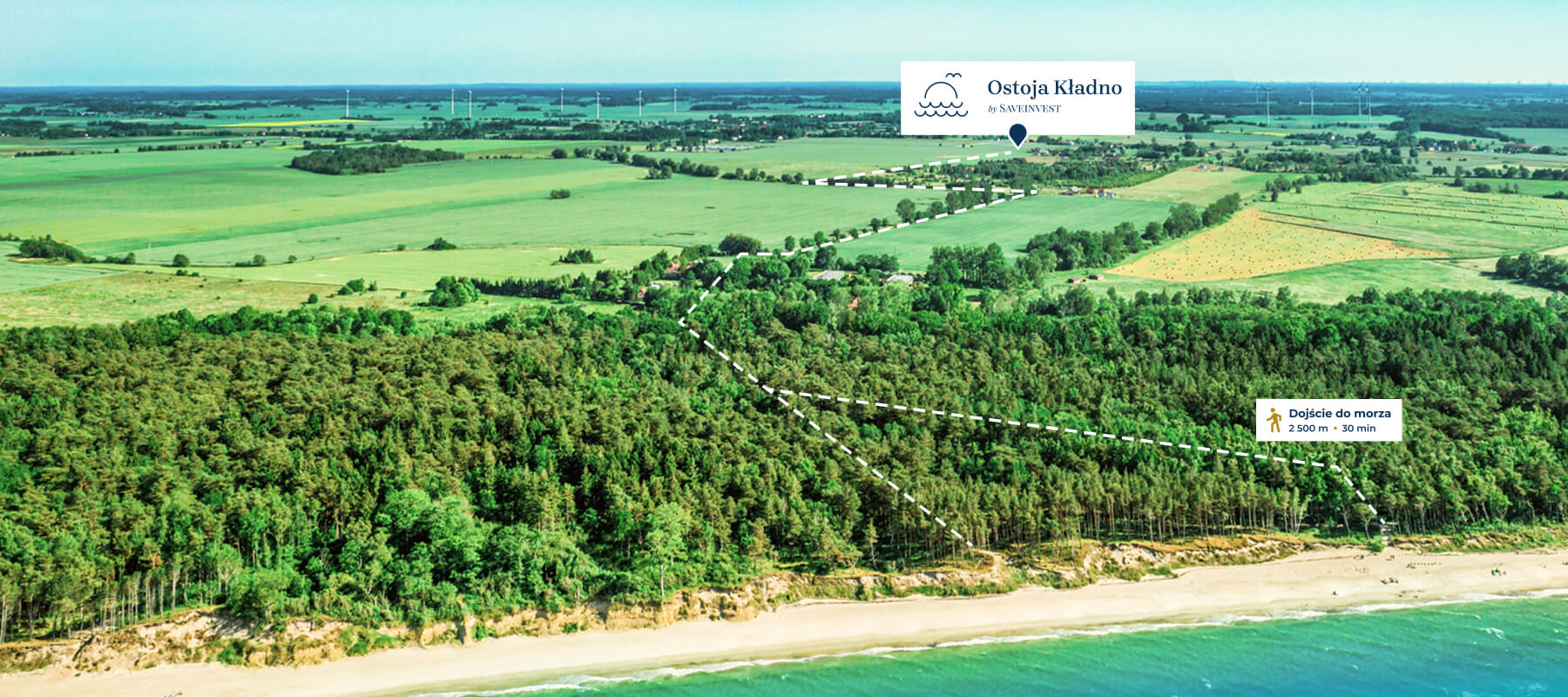 piaszczysta plaża w odległości 2 500 m (30 min)