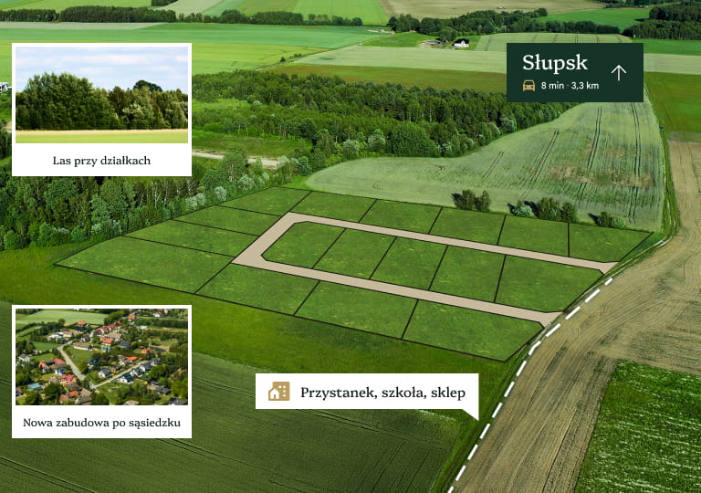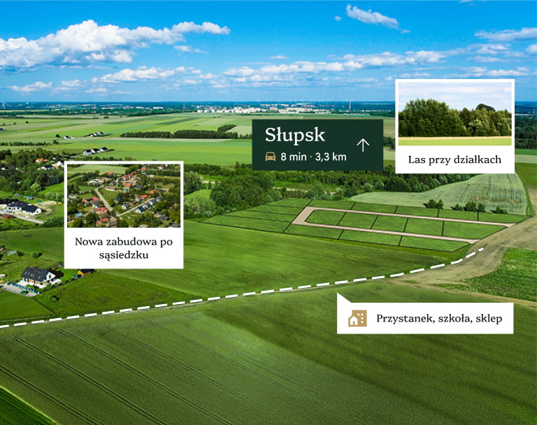 Działki w trakcie przekształcania – budowlane w planie ogólnym. Oferowane działki znajdują się w trakcie procedury przekształcenia na działki budowlane, co stanowi istotny atut inwestycyjny. W przeszłości były one objęte miejscowym planem zagospodarowania przestrzennego jako tereny budowlane. Plan ten utracił ważność w momencie włączenia obszaru do granic miasta Słupsk.
